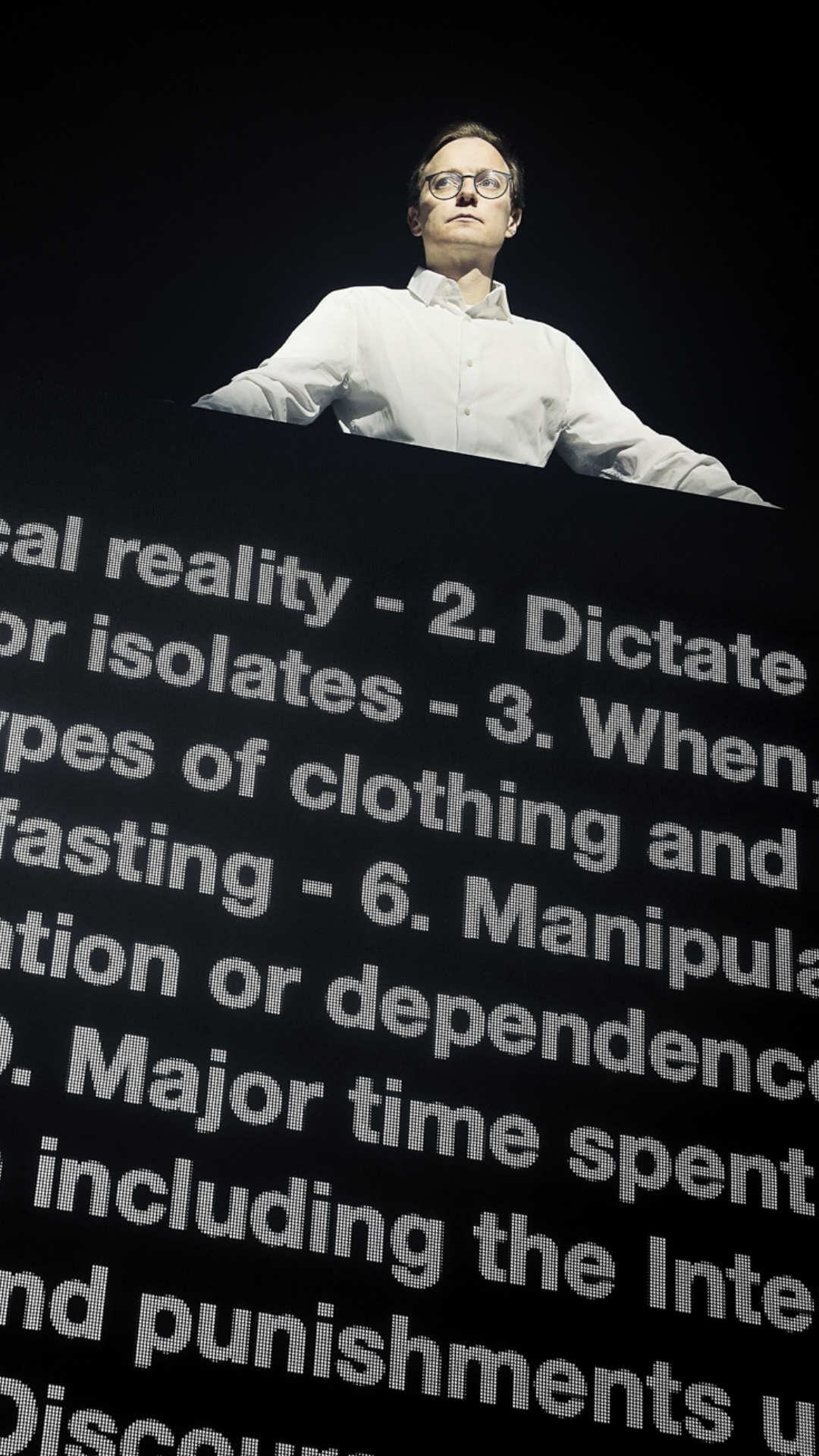 Som forestillingen udvikler sig, opdager du, at dine handlinger er så forudsigelige, at skuespilleren på scenen kan forudse dine handlinger før dig selv. Og måske skal du lytte, når han fortæller, hvad du bør gøre? For hvad nu, hvis han kender dig bedre, end du kender dig selv?